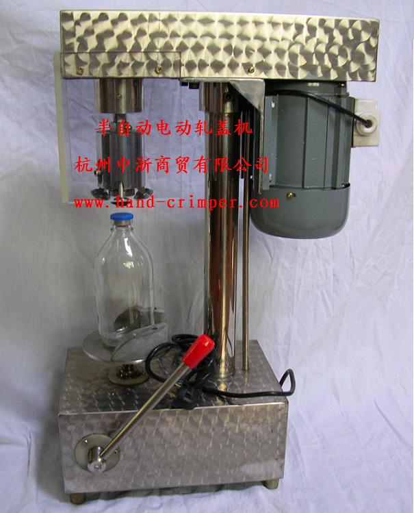 軋蓋機>本公司最新研發的臺式三刀旋風軋蓋機,其主軸、臺板以及關鍵部位全部采用不銹鋼材料,電動機選用不銹鋼罩,操作安全方便,整潔耐腐蝕易清洗,制造新穎美觀,設計合理輕巧,軋蓋刀頭系用優質鋼材加工,表面淬火處理,經久耐用。工作時,被軋蓋瓶子不轉,均布120°三只旋風刀旋轉軋蓋封口,刀柄設計為彈簧結構,三刀的距離可以微調,適應性強,所軋的瓶蓋密封性好,軋蓋成品率高。本機是科研單位、大專院校、部隊、醫院和制藥廠的理想壓蓋設備。